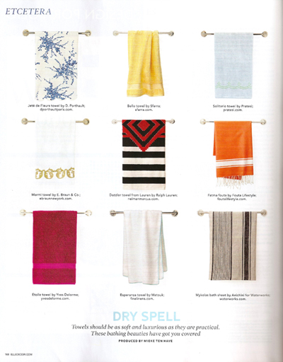 ELLE DECOR – March 2012: Dry Spell – featuring the Mykolas Bath Sheet