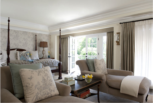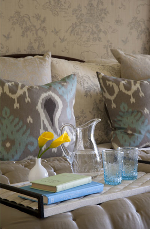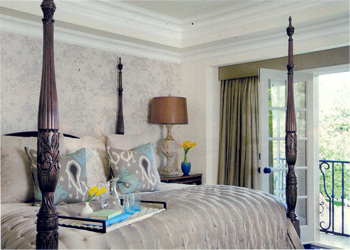 For her design of the interior of a home in Hancock Park designer Jennifer Davis chose ANICHINI’s Stintino pillows in gray/blue and the Super Soft Quilt in platinum. Stunning and serene!
